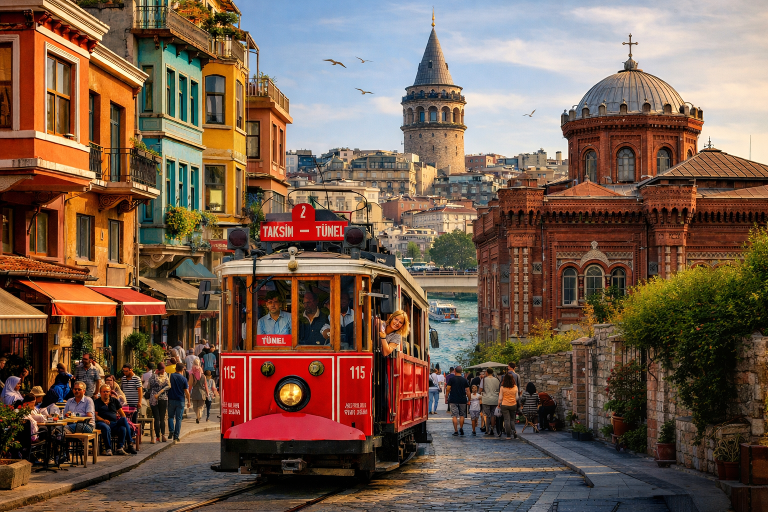 In the distance, standing proudly above the skyline, we spot the iconic Galata Tower watching over the city — a reminder that Istanbul is layered with stories.